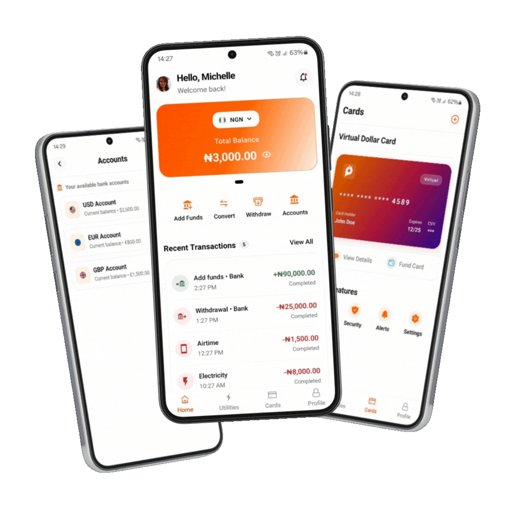 Access GBP, USD, EUR accounts, receive payments globally, and exchange to NGN instantly. Simple, secure, and built for your hustle.